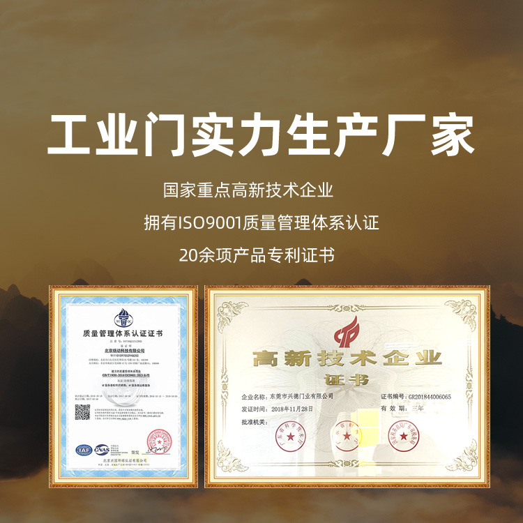東莞市興德門業(yè)有限公司是以生產(chǎn)滾筒式快速軟簾門、快速卷簾門、快速門、快速自動(dòng)門、高速門、高速卷門、高速卷 簾門、自動(dòng)門、快速堆積門、金屬自由門、工業(yè)卷簾門、滑升門、pvc透明軟門簾、磁吸門簾、推拉磁鐵門簾、透明軟板、防塵防靜電工程等方面的開發(fā)、設(shè)計(jì)與生產(chǎn)、銷售于一體的高新技術(shù)企業(yè),公司實(shí)力雄厚,專 注于產(chǎn)品十年余載,產(chǎn)品暢銷各地。